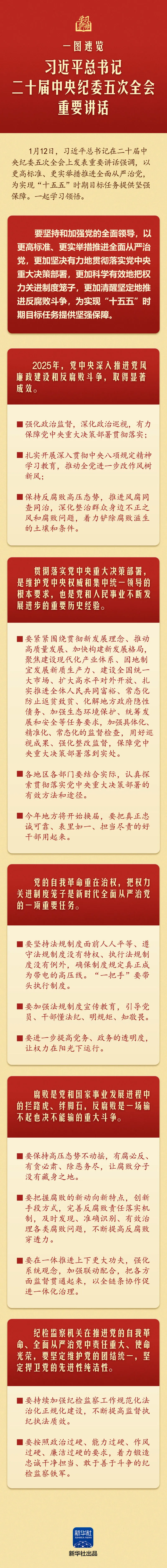 学习正当时 | 一图速览习近平总书记二十届中央纪委五次全会重要讲话