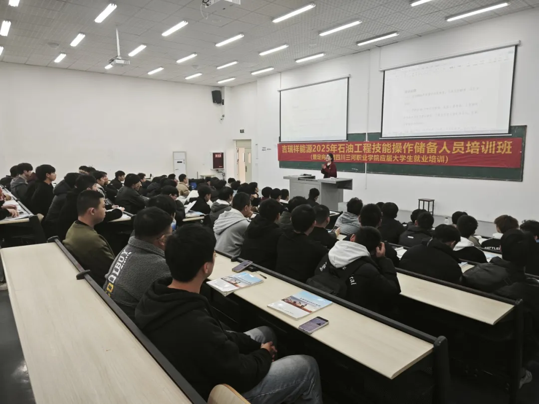 12月1日吉瑞祥能源2025年石油工程技能操作储备人员培训班(暨定向招聘四川三河职业学院应届大学生就业培训)正式开班,来自四川三河职业学院60余名应届大学生参加。