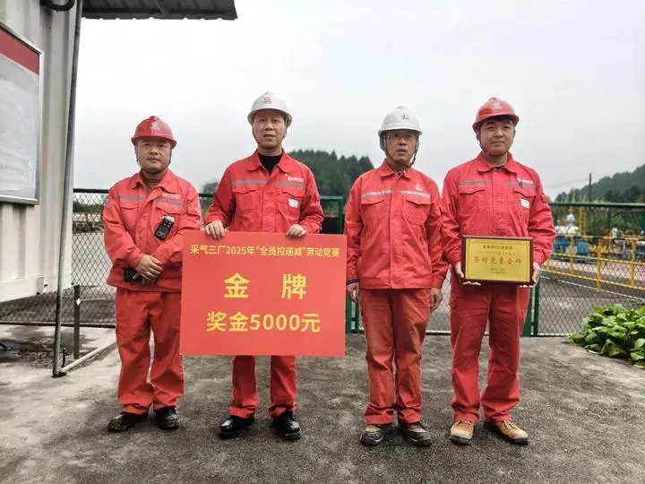 江沙220-4HF井在采气三厂2025年9月“全员控递减”群众性创新创效专项劳动竞赛中获得合理化建议专项奖一等奖,江沙231HF班组也因该井站成倍数激增的产量贡献突破摘得了采气三厂2025年9月“全员控递减”群众性创新创效专项劳动竞赛“全员控递减”劳动竞赛集体竞赛项目金牌。