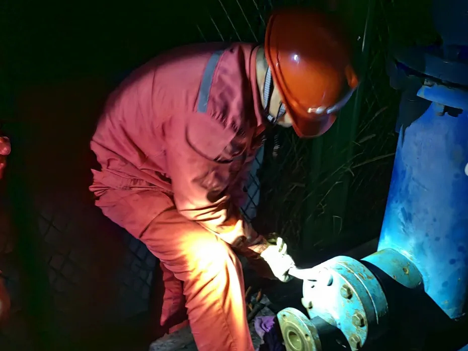 在产量陡增最初的那几日,故障频率也随之增加。疏水阀三四日出问题一次,除砂器更是频频告急。江沙220-4HF井站值守员工的紧急维修电话频频响起,巡检班大班员工无论早晚总是马不停蹄应召赶来,从日头高挂,到星光闪闪、月影绰绰,“抢时间”就是“稳产量”,“抢维修”就是“控递减”。他们一趟趟的紧急奔赴,他们黑夜里在微弱灯光下的细致维修,护住了向好的产量值。