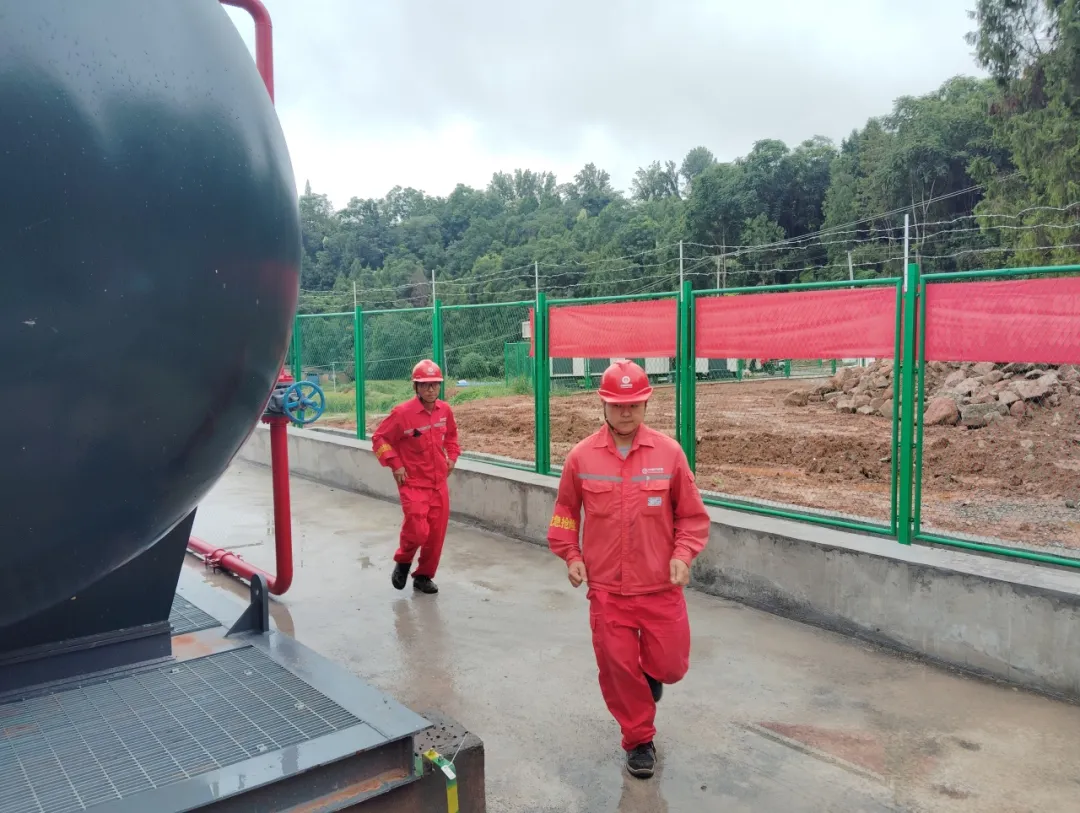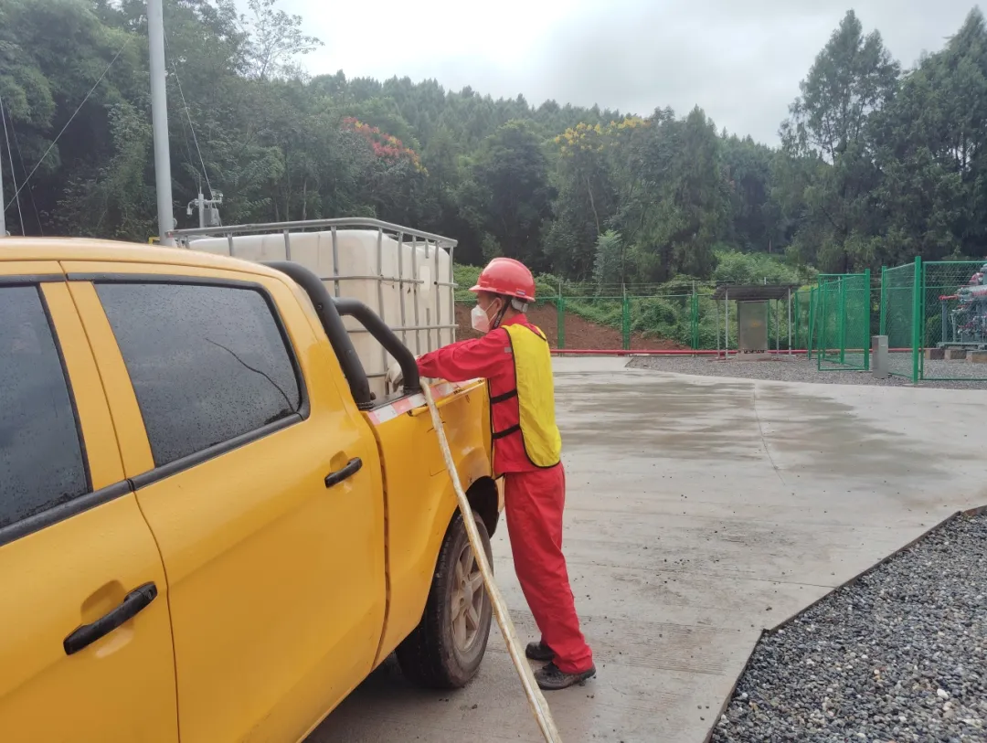 项目部经理邱云接到报告后,立即启动项目部应急预案,组织义务应急队赶往现场,同时将情况上报采气一厂生产指挥中心与公司应急指挥办公室。应急指挥办公室接到报告后,立即向领导汇报。鉴于现场储罐混合液价值达4万元,公司总经理呼春燕决定启动公共安全应急预案,安排陈建昌组织应急小组奔赴现场。
