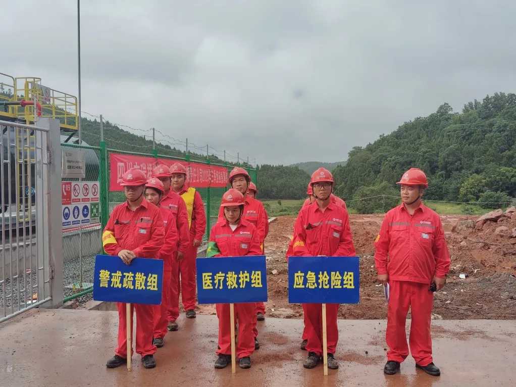 国庆、中秋佳节将至,为保障节日期间安全生产平稳运行,筑牢节日安全防线,进一步提升企业应对突发公共安全事件和火灾事故的应急处置能力,9月17日,四川吉瑞祥能源技术服务有限责任公司在采气德阳项目管理部知新301HF井站组织开展了2025年第三季度公共安全与火灾综合应急演练。公司党委副书记、纪委书记、常务副总经理陈建昌任现场总指挥,各分支机构(部门)安排人员现场观摩学习。新中镇派出所民警、采气一厂相关领导莅临现场指导。