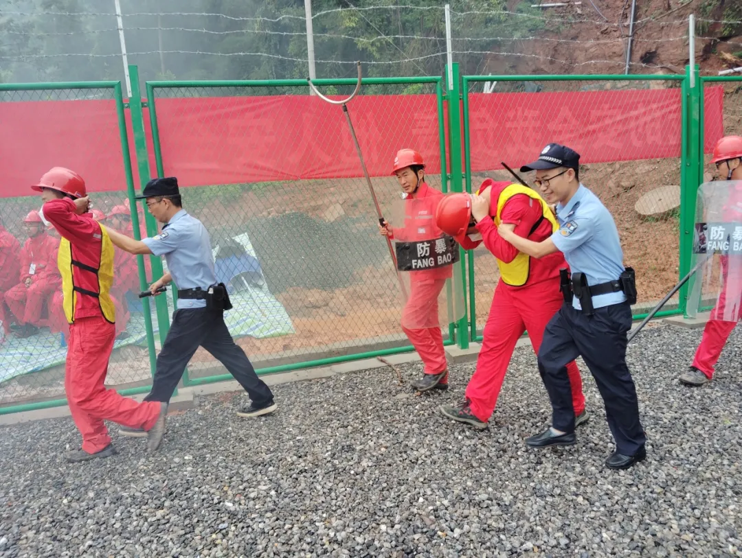 班组支援队伍于21:15率先抵达现场,对不法分子进行劝阻无果。21:25,邱云带领项目管理部义务应急队到达现场接管指挥权。21:30,新中镇派出所民警和公司陈建昌带领相关人员相继到达,现场指挥权移交至陈建昌。双方短暂交流后准备实施抓捕。