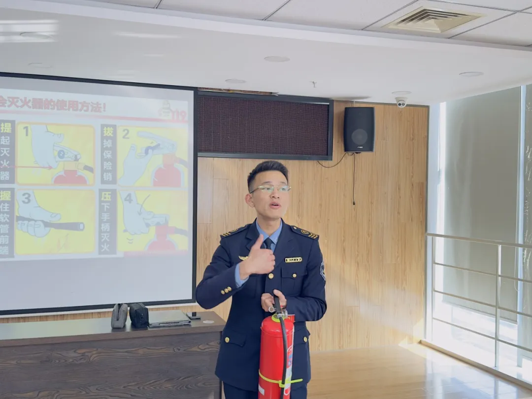 本次培训内容涵盖防身术教学、办公场所与家庭用电用火隐患识别与自救方法、电动车安全使用警示以及消防器材实操讲解等多个方面,通过理论与实操相结合的方式,帮助员工掌握基本的防火、避险与自救技能。